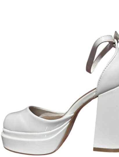 Su taco alto estiliza la figura, mientras la plataforma frontal equilibra la altura para brindar mayor estabilidad al caminar. La pulsera al tobillo asegura un ajuste firme y elegante, realzando la silueta del pie con un toque moderno y femenino.