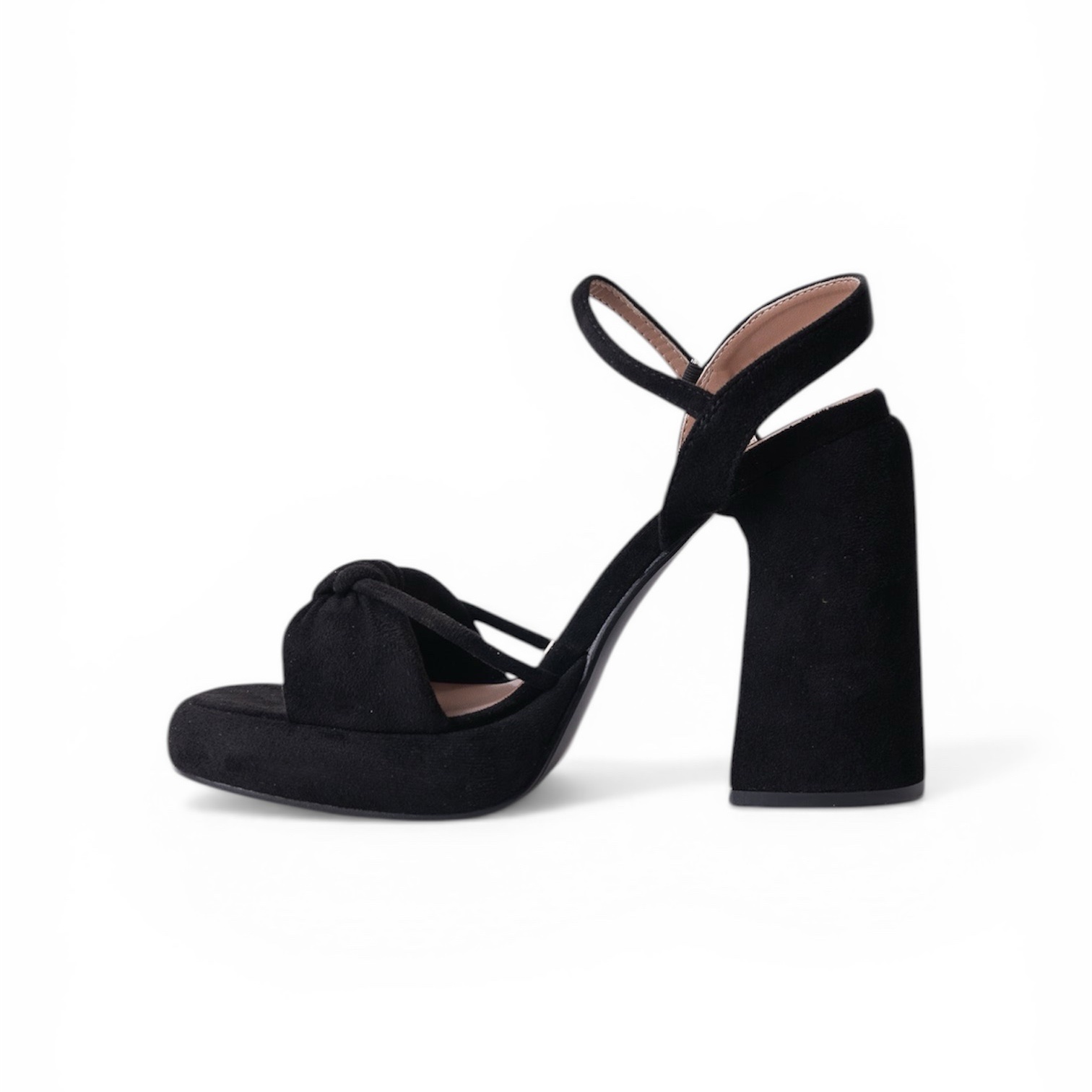 Confeccionada en material sintético tipo gamuza (suede) de alta calidad, destaca por su nudo frontal entrelazado que aporta volumen y un estilo único a cualquier conjunto.
